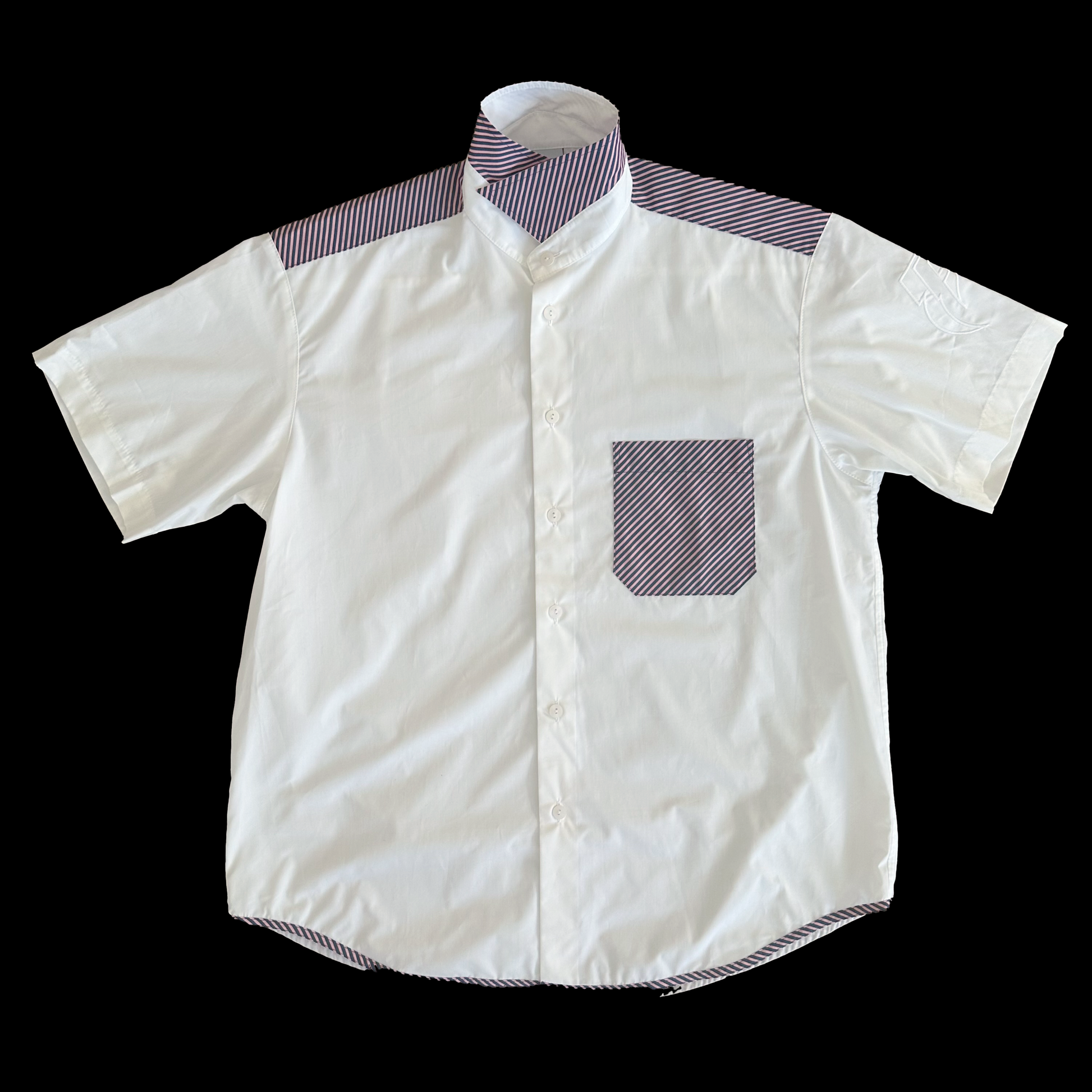 Oversized fit. With custom fabric details on the inner collar, back yoke and front pocket. Embroidered logo on left sleeve.